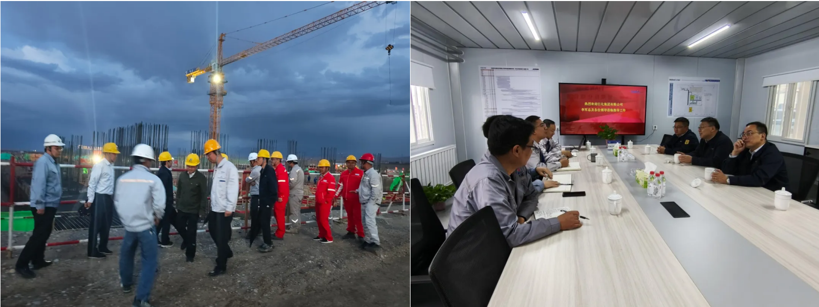 除此之外,在項目建設期間,巨化集團高層領導也多次到標段三項目現場調研指導。2025年6月23日,巨化集團董事長周黎旸到項目現場調研;8月4日,巨化集團總經理李軍及巨化集團副總經理、甘肅巨化新材料有限公司執行董事、總經理湯陽再次帶隊到標段三調研,對項目進展給予充分肯定。